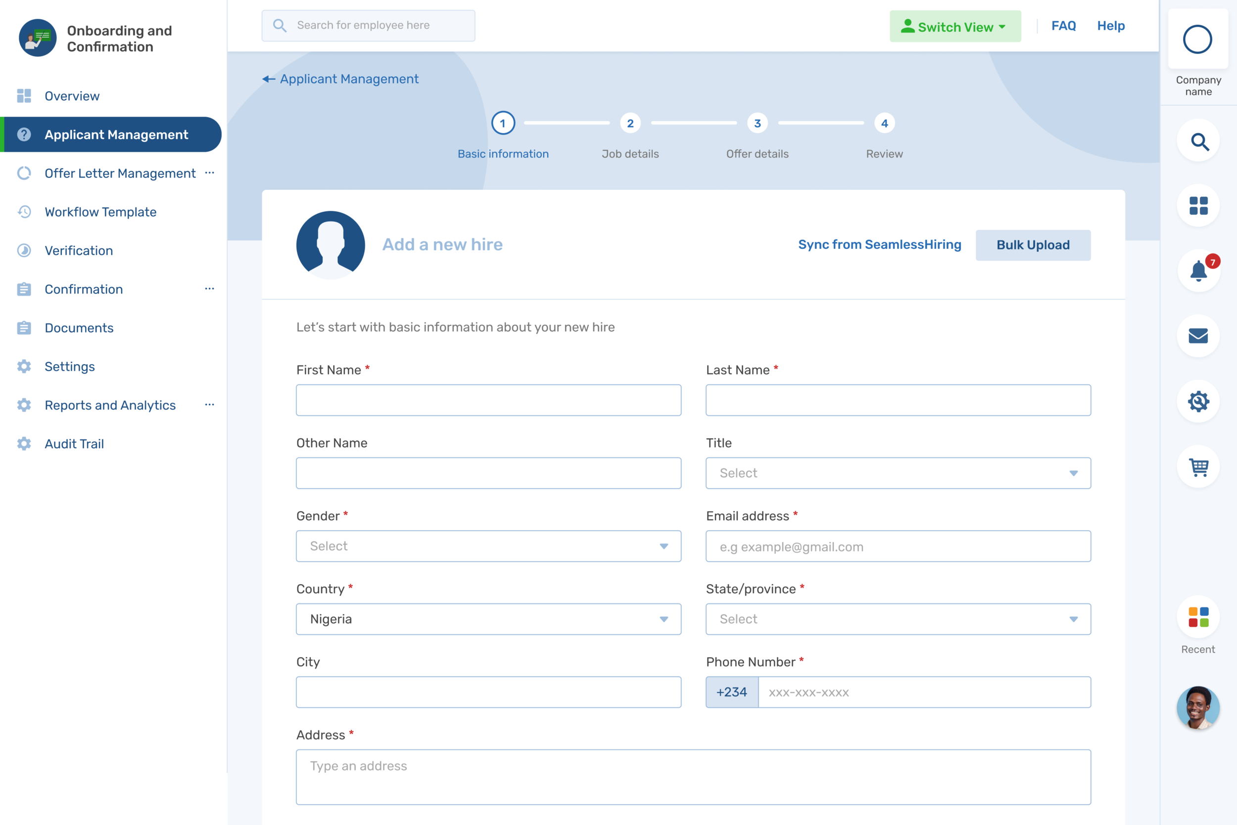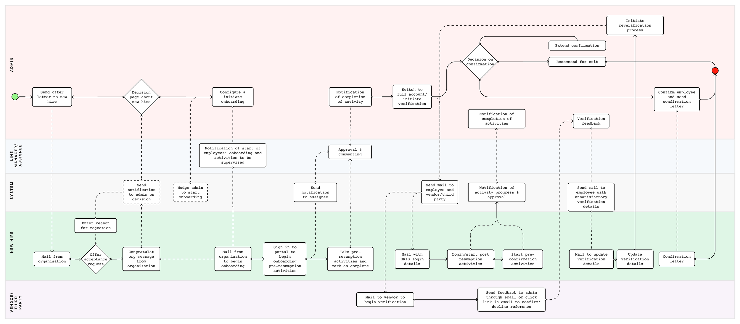The project is a web application for the onboarding of new staff into organizations. It handles the management of staff from offer acceptance up until confirmation. This case study features both the Employee Self Service (ESS) and Admin sides of the application. As the Lead designer on the Onboarding and Confirmation team, I led the efforts across various product design roles.